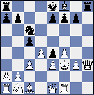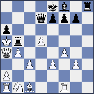 15.Kxe4 Dg2+ 16.Kd3 c4+ 17.Kxc4 De4 18.b4 Dc2 19.Dd1 Sa5+ 20.Kb5 a6+ 21.Kxa5 b6+ 22.Kxb6 Df5 23.d5 Tb8+ 24.Ka5 Dd7 25.Da4+ Tb5+