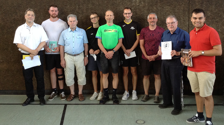 Das Siegerfoto mit den Schwäbischen Preisträgern zeigt von links nach rechts (Platzierungen in Klammern beziehen sich ausschließlich auf schwäbische Teilnehmer): Lothar Weimer (Turnierleiter), Christoph Nissen (2./B-Gruppe), Oleg Lapin (3./B-Gruppe), Zarko Vuckovic (1./A-Gruppe), Helmut Specht (1./B-Gruppe), Uli Weller (3./A-Gruppe), Thomas Reis (2./A-Gruppe), Dr. Klaus-Norbert Münch (Schwäb. Seniorenmeister), Simon Bogner (4./B-Gruppe). Es fehlt auf dem Bild die schwäbische Damenmeisterin Mariya Manko.