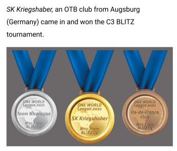 Auf Chess.com sind bei Team Nicaragua 1086 Mitglieder gemeldet, soweit ich gesehen habe, alle aus Nicaragua. Die Spielstärke war jetzt nicht so besorgniserregend, ihr Spitzenspieler ist ein Nationaler Meister mit einer Wertungszahl von 2060, im Blitz etwas höher. Dementsprechend wurde das Spitzenbrett von Team Nicaragua in gerade mal (zweimal) 19 Zügen entsorgt. Trotz der Vereinsgröße bekamen unsere Gegner nur 10 Spieler an die Bretter. Auch diese Begegnung ging ganz klar mit 18 : 2 für uns aus. Denis schaffte es, während er seinen Gegner niederspielte, noch ausreichend Fussball am Fernseher zu gucken.